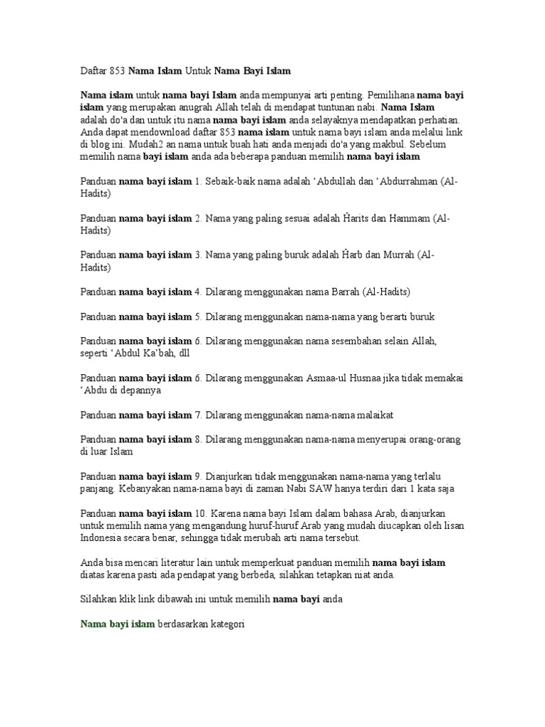 Beberapa pilihan nama bayi laki laki terbaik menurut islam yang bisa menjadi pertimbangan menentukan nama anak anda.